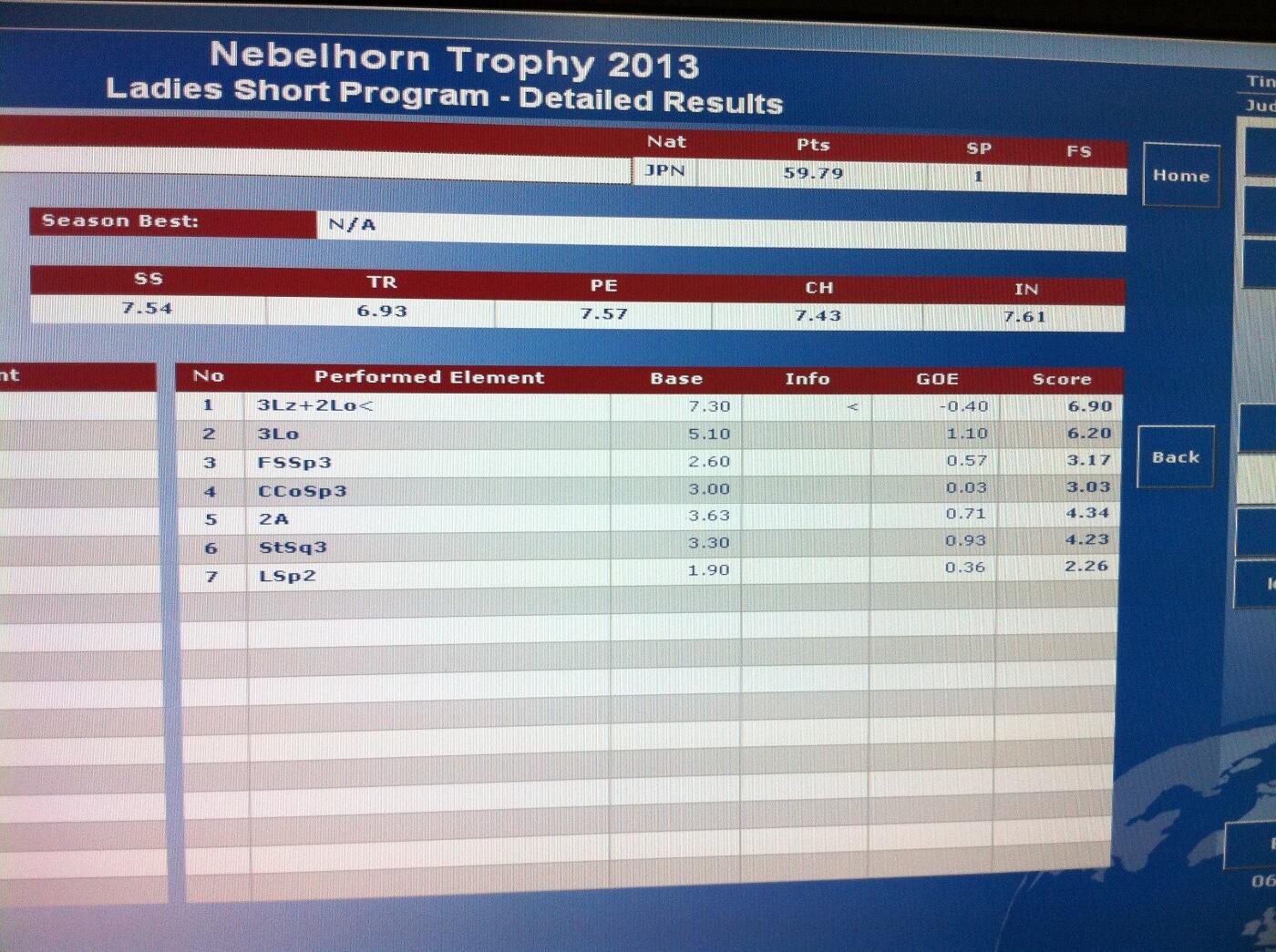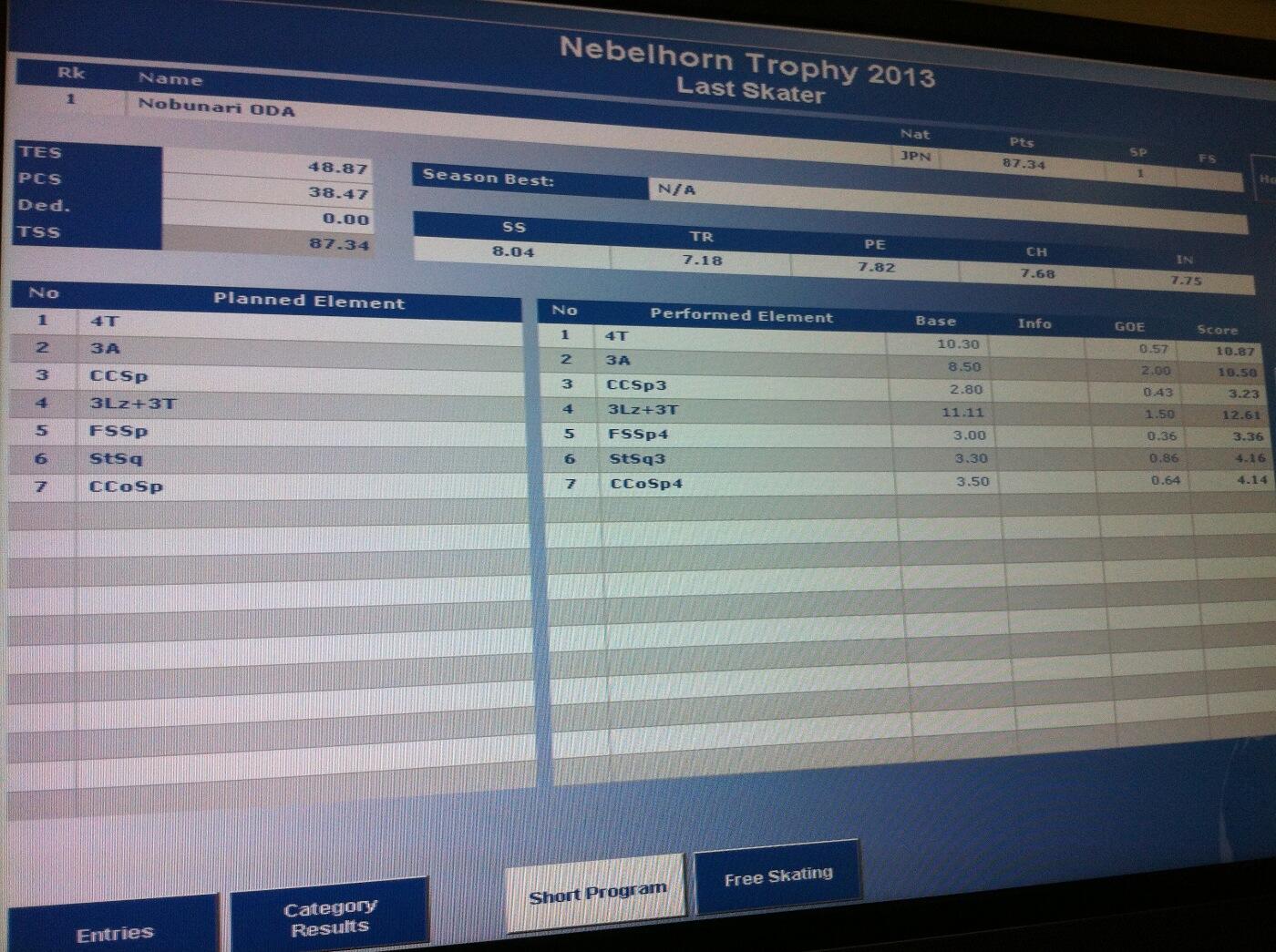 ☞ Component&Element Scores 演技構成点と各エレメンツの得点表